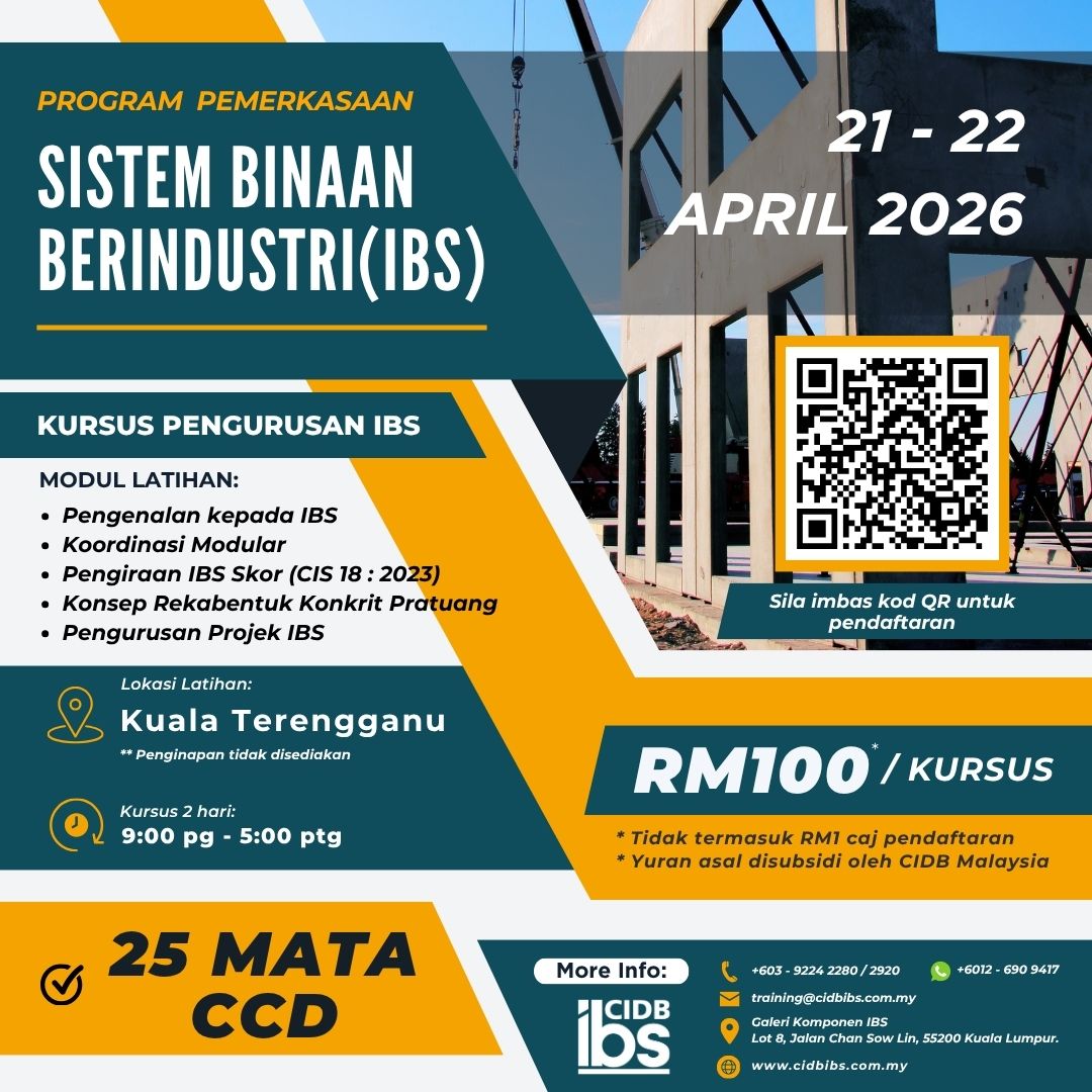 “We aim to assist the construction industry to increase the use of IBS through digitisation and adopt industry 4.0 technology, apart from adhering to construction material standards compliance in Malaysia. Industries are encouraged to work on sustainable practices of environmental, social and governance (ESG) towards enhancing Malaysia’s competitiveness. We are here to advise on IBS incentives, green initiatives and building materials compliance, research and development, training, and promotion efforts.” added Dato’ Arham.